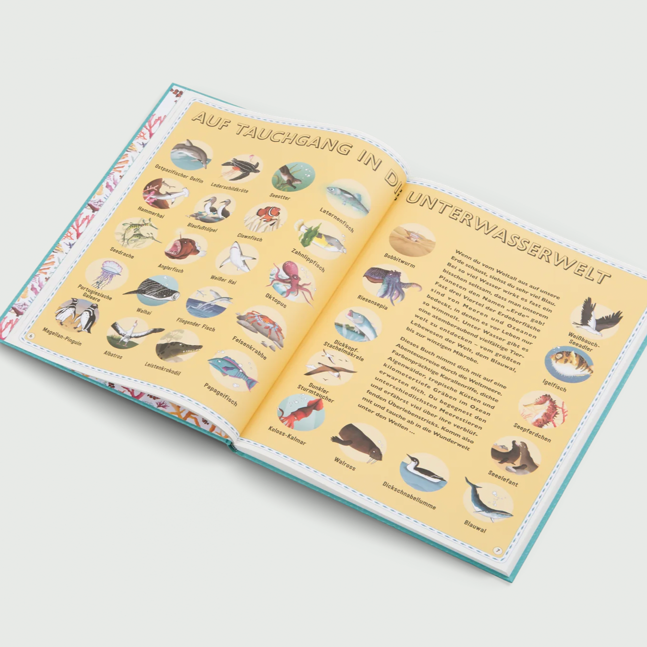 Lucy Letherland's large-format hidden object book invites you to embark on an adventure through the world's oceans. There is a breathtakingly diverse range of flora and fauna on and under water to discover. On over 44 double pages, the detailed and humorously illustrated book offers a lot of amazing information.