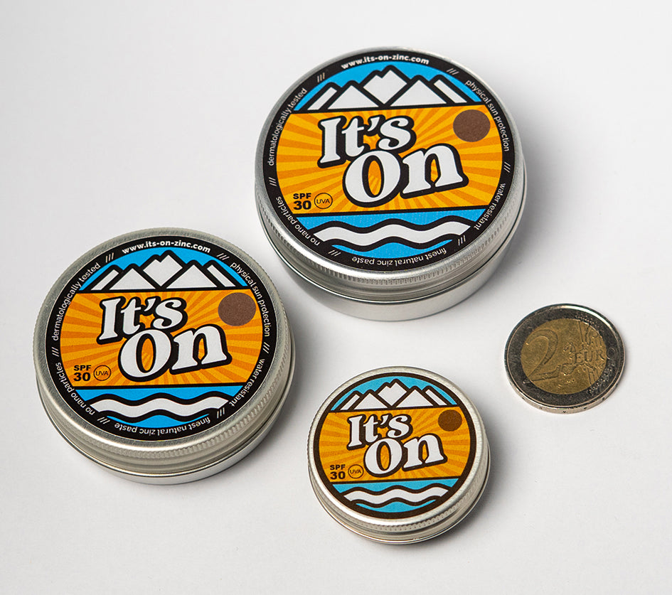 To reliably protect against harmful UV radiation, the paste must be applied thickly. To do this, first take a portion out of the jar with your finger. This works best if you scrape a little paste out with your fingernail (away from the body, so that nothing gets stuck under the nail). Once on the skin, the It’s On Zinc Sunscreen can then be spread very well.