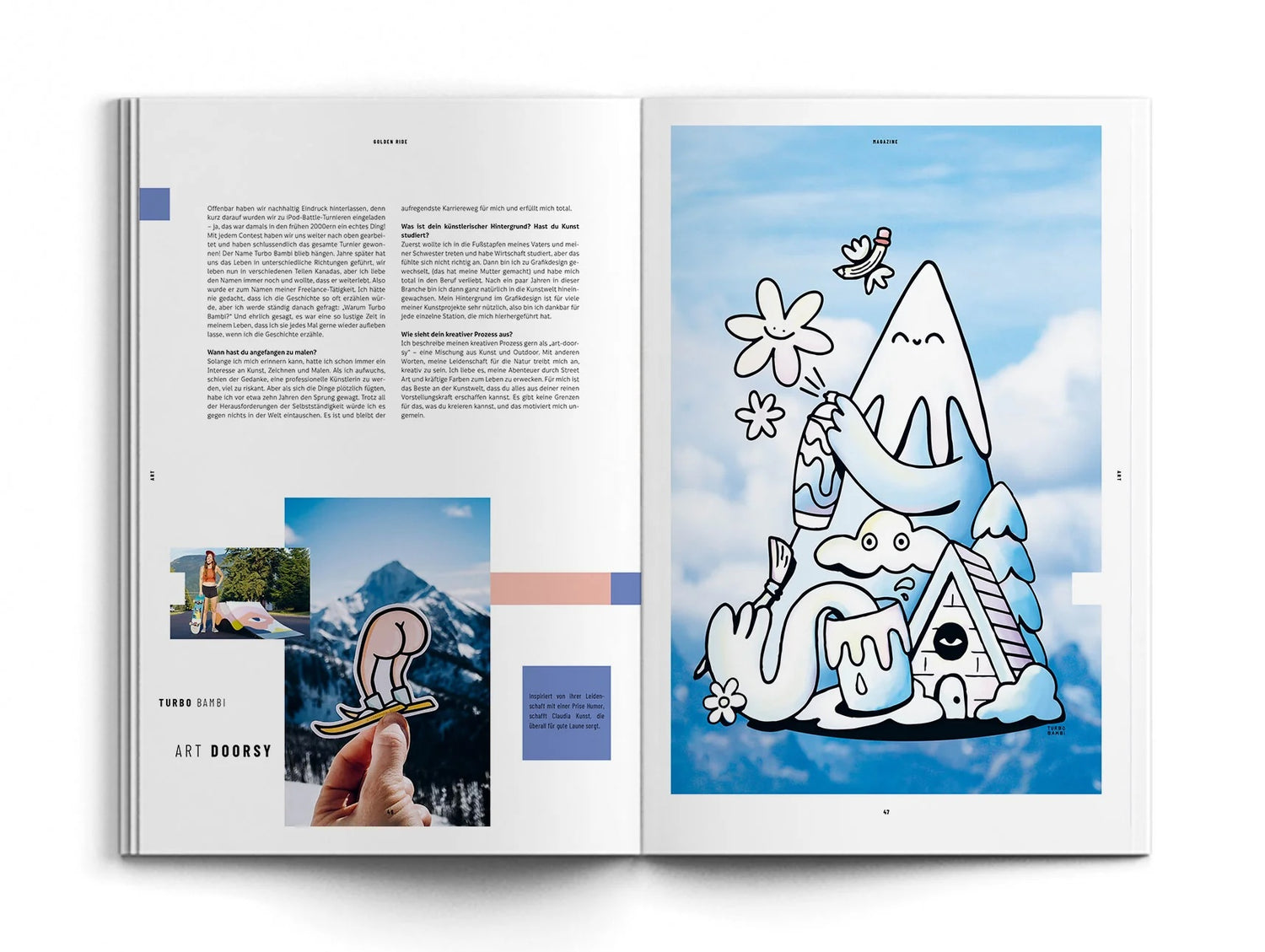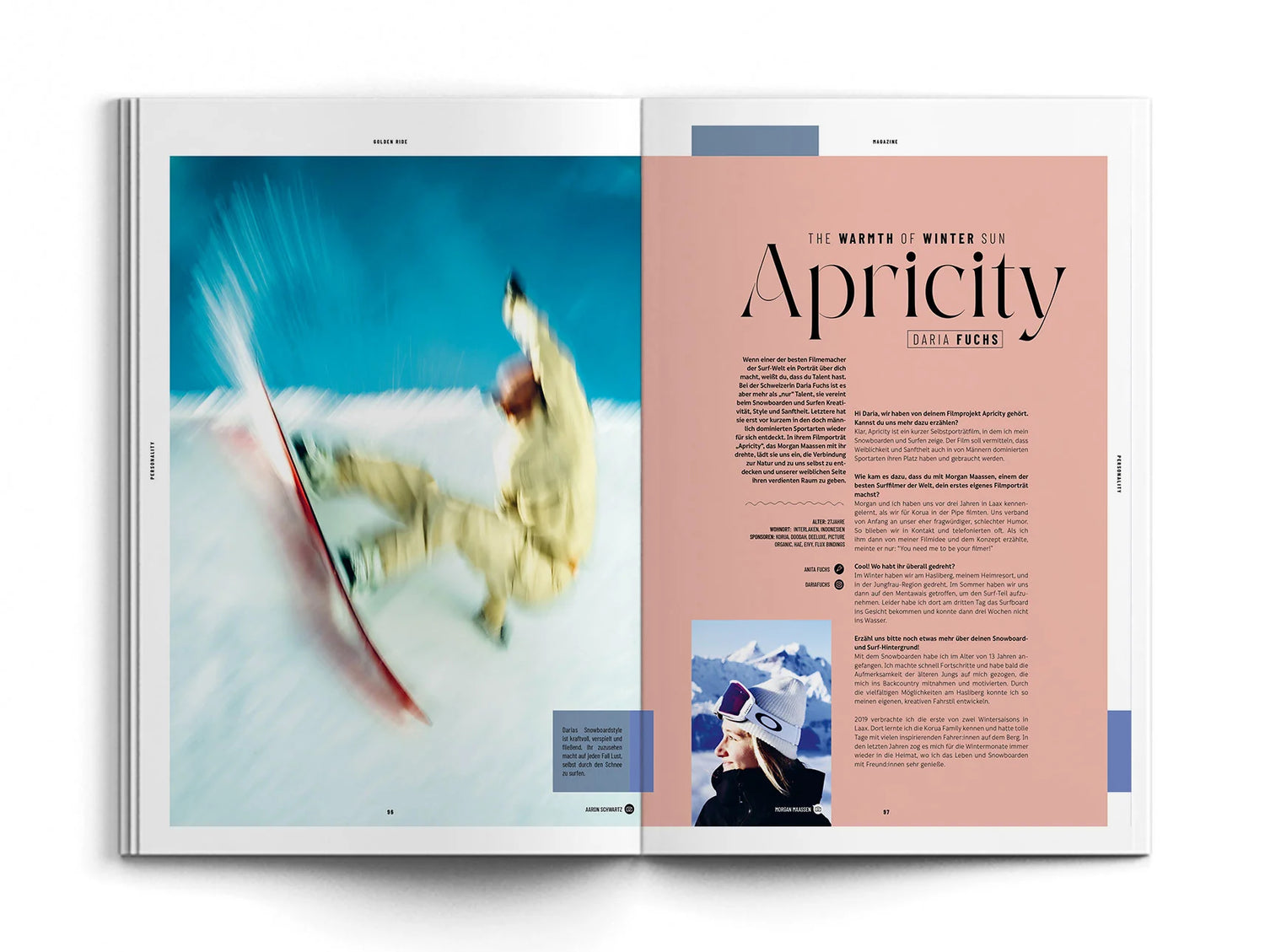Golden Ride ist das einzige Actionsport-Magazin nur für Frauen, deren Herz für Surfen, Snowboarden, Mountainbiken, Graveln und Reisen schlägt. Es zeigt dir die weibliche Seite des Actionsports und ermutigen dich selbst auf Board und Bike zu steigen, neue Erfahrungen zu machen und andere Blickwinkel zu entdecken.