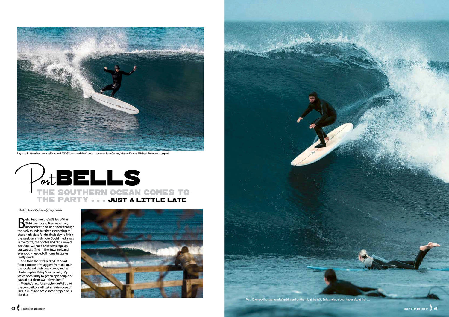 Bells Beach was small and side-shore through the early rounds of the WSL Longboard leg, but then cleaned up to chest-high glass for the finals day to finish the week on a high note - and everybody headed off home happy-as. And then the swell kicked in! The locals had their break back, it was well-overhead and clean, and ace Victorian photographer Katey Shearer was on hand to catch the action.